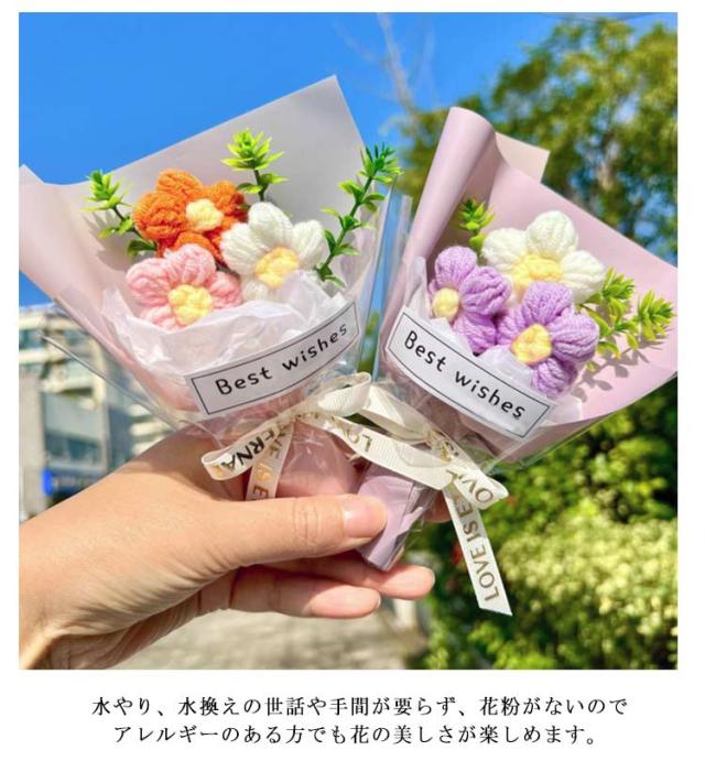 カラフル ニットフラワー 可愛い プレゼント ニットブーケ ミニブーケ 母の日 子供 毛糸 卒業式 手作り花 手つくり かぎ針編み 花束 造花 飾り 成人式 記念日 敬老の日 お祝い ニットブーケ バレンタイン ミニサイズ 推し活 結婚記念日 父の日