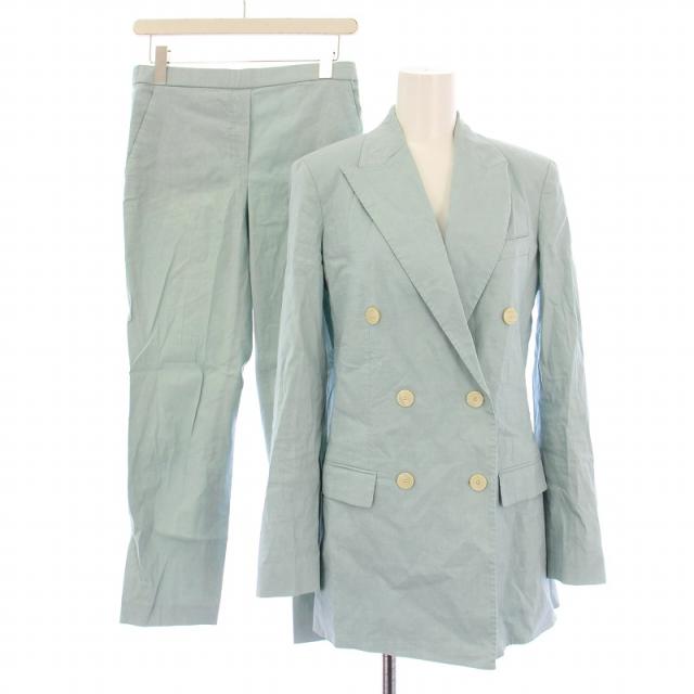 【中古】セオリー セットアップ テーラードジャケット ダブル 背抜き テーパードパンツ スラックス イージー 水色
