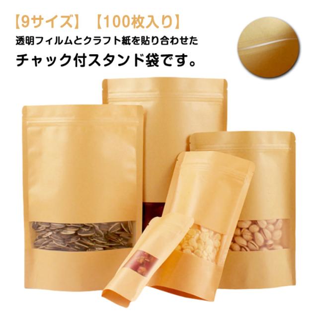 密閉袋 チャック付透明クラフト袋 紙袋 透明窓付き 100枚入り お菓子 チャック付 食品収納袋 100枚入り ジップ袋 食品保存 キッチン収納 保存袋 クラフト紙袋 大人数 配布 クラフト袋 バレンタインデー ママ会