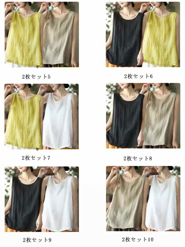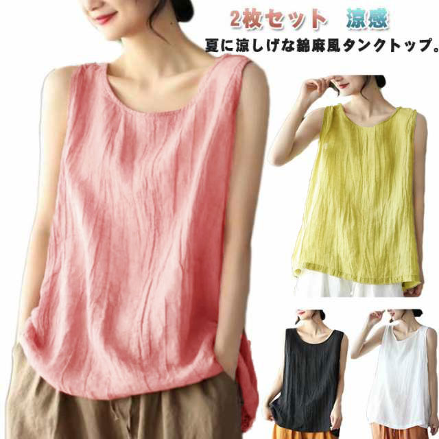 タンクトップ 2枚セット 2枚セット ブラウス 大きいサイズ サマータンク ゆったり タンクトップ リネン風 コットン インナー タンクトップ トップス 綿麻風 レディース 綿 ノースリーブ シンプル 麻 ナチュラル 重ね着 レイヤード 無地 着痩せ 涼感 夏