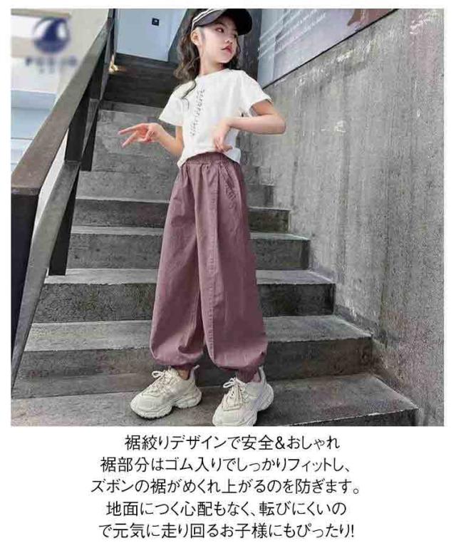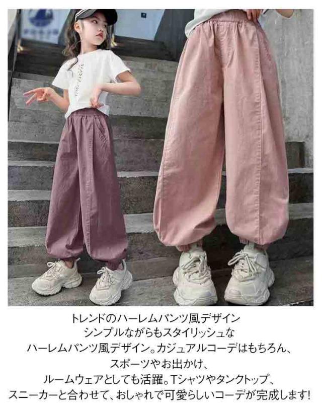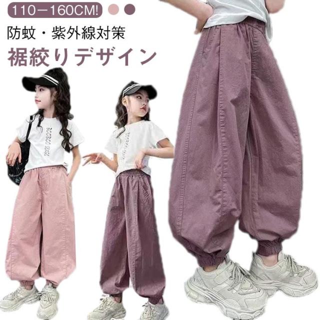 ゆったり 女の子 夏服 130 裾絞り 虫除け 長ズボン ジュニア ハーレムパンツ ロングパンツ キッズ 子供服 バルーンパンツ ウエストゴム ボトムス 春夏 110 120 薄手 140 150 160