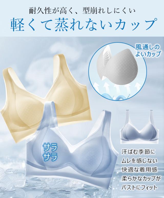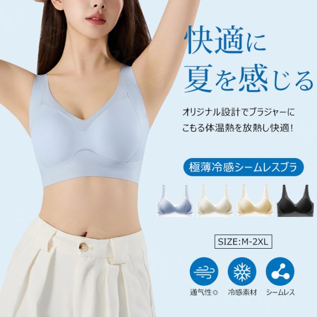 <2点まとめ買いで送料無料>シームレスブラ 夏用ブラ 接触冷感 新作 夏ブラ 紙より薄い 涼しい 背中 スッキリノンワイヤー ブラジャー透ける レディース 軽量 ひびきにくい 下着 ひんやり 軽い ブラ ナイト肌着 吸汗速乾 暑さ対策 入学式 入園式