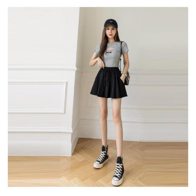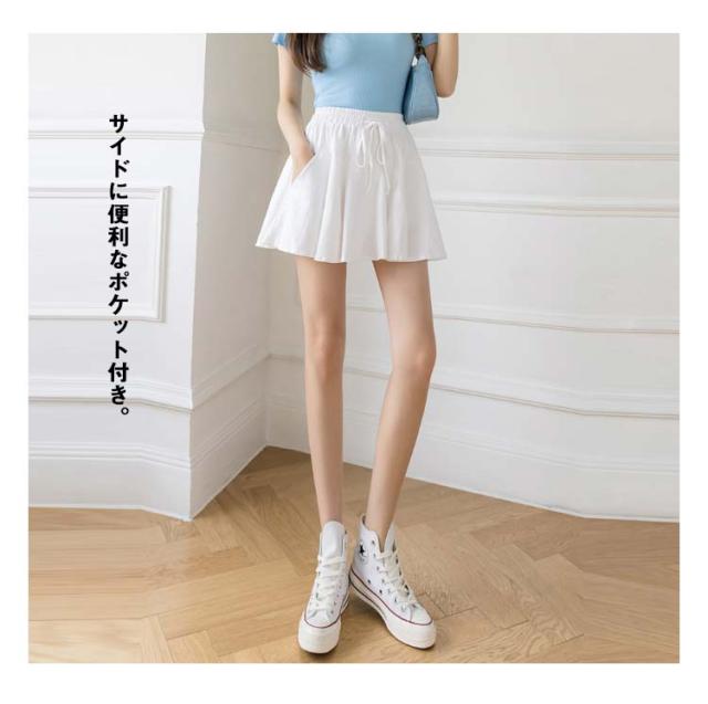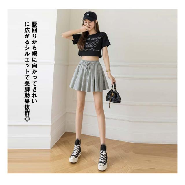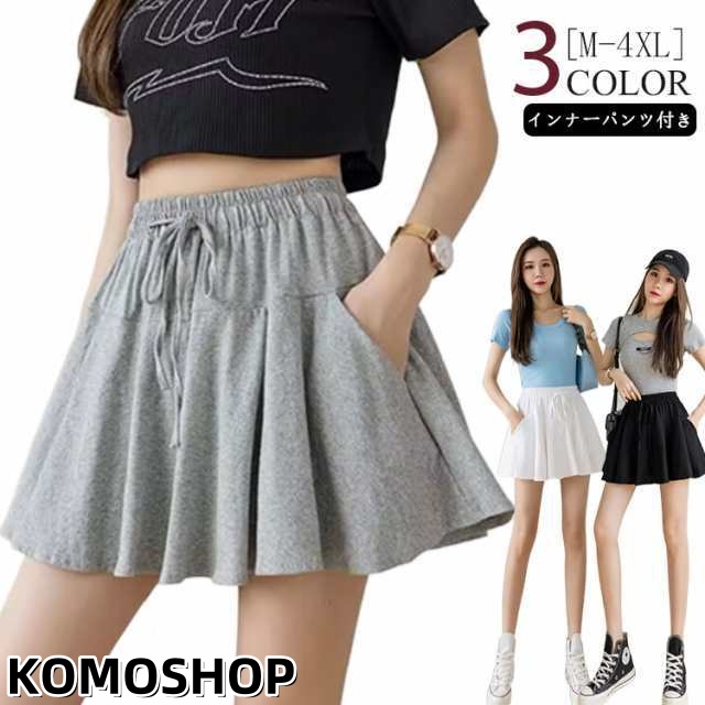 ミニスカート ウエストゴム プリーツスカート 白 ポケット付き スポーツウェア レディース ランニング グレー インナーパンツ付き スウェット ゴルフ 膝上 夏 スカート テニス 黒 ハイウエスト ペチパン付き ボトム 無地