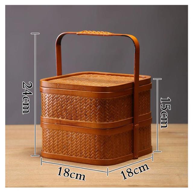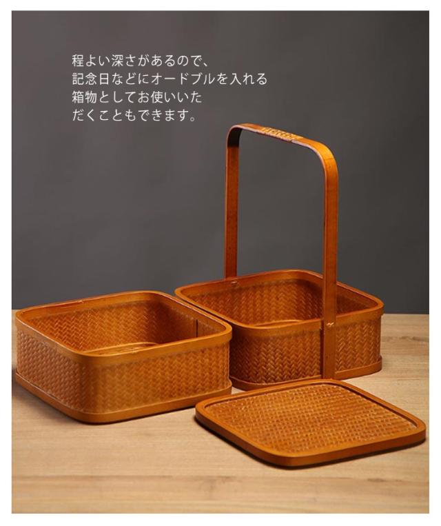 かご 漆塗り ハンドル付き 竹 手作り バスケット 重箱 竹 竹籠 竹かご 行楽弁当箱 おせち ピクニック バスケット手提げ アウトドア 二段 ピクニックカゴ フタ付き お正月 迎春 花見 四角 和風収納 小物収納 茶道具