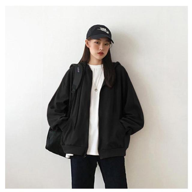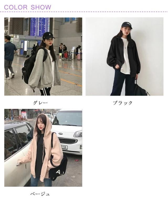 ジップアップ 無地 レディース 薄手 春秋 パーカー フードパーカー ジップアップ 着回し フード付き スウェット 着痩せ 長袖 おしゃれ 韓国ファッション ゆったり 通学 カジュアル M L XL 2XL グレー ブラック