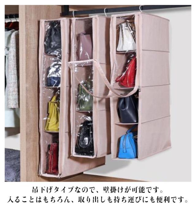 バッグ収納 吊り下げ クローゼット 棚 吊り下げ カバンラック スリム カバン 収納 吊り下げ 鞄 バッグ収納 吊り下げ棚 バッグ収納ラック ウォールポケット アクセサリー 靴下 おしゃれ 小物収納 衣類 壁掛け 整理整頓 立体 防湿防塵 型崩れ防止 省スペース