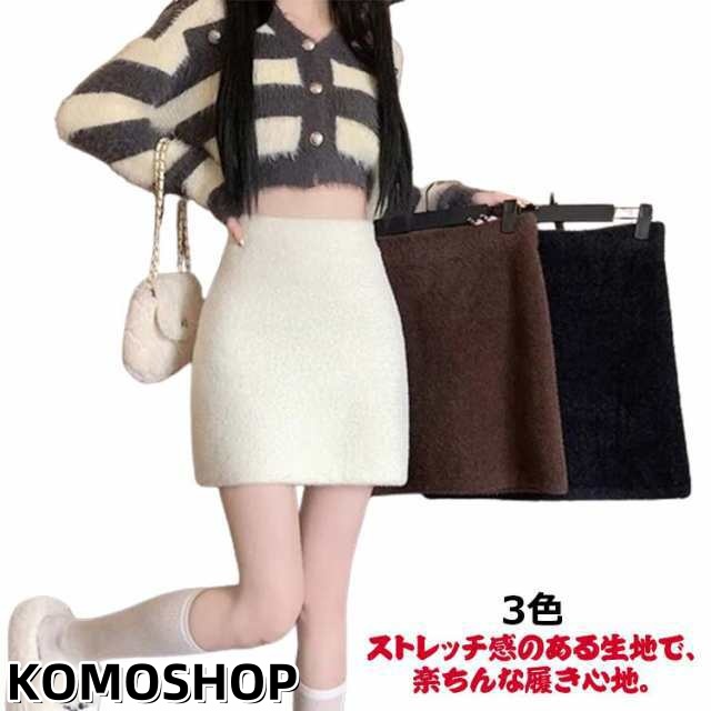 レディース スカート ミニ ミニスカート タイト もこもこ モコモコ ふわふわ 無地 ボア 短毛 毛足 フェイクファー 秋冬 黒 韓国 ハイウエスト オフィス OL 通勤 学生 通学 デート お出かけ あったか 暖かい 美脚 カジュアル 大人 可愛い セクシー 送料無料
