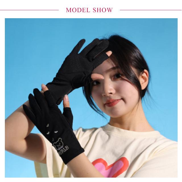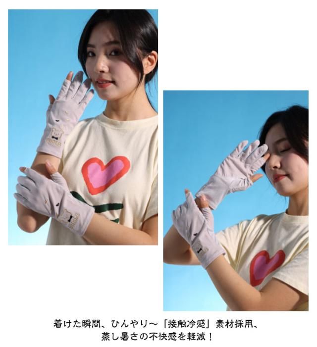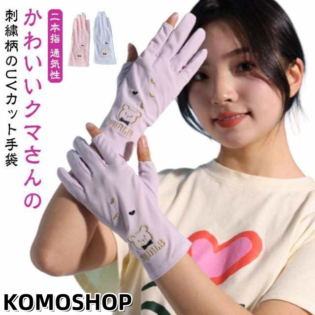| かわいいクマさんの刺繍柄のUVカット手袋 ひんやり涼しい メッシュで通気性抜群 着けた瞬間、ひんやり?「接触冷感」素材採用、蒸し暑さの不快感を軽減! 手のひら側はメッシュで快適な通気性。さらに保湿性も抜群! 指の先は途中でカットされているデザインなので、装着したままスマホの操作が可能。 少し長めのデザインなので、手首部分までしっかり紫外線からガードしますので日焼け対策にぴったりです。 | |