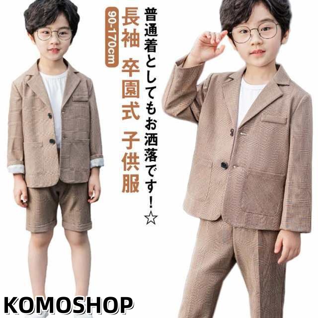 卒業式 入学式 スーツ 男の子 半ズボン ジュニア 大きいサイズ 小学生 セットアップ ハーフパンツ フォーマル スーツ 長袖 卒園式 子供服 スーツ ジャケット ロングパンツ ブラウン 子供服 秋 おしゃれ 無地 発表会 結婚式 90 100 110 120 130 140 150 160 170 送料無料
