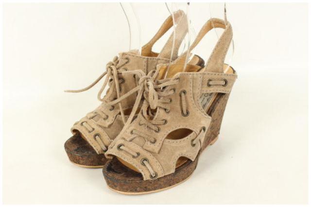 | 状態 | 表面→所々にダメージや毛羽立ちあり。ストラップにシワあり。内側→インソールのつま先にダメージや薄黒い汚れあり。アッパーやストラップにシワあり。ソール→つま先にダメージや薄黒い汚れあり。ヒール→数ヶ所にダメージや薄黒い汚れあり。リフトに減りあり。 |