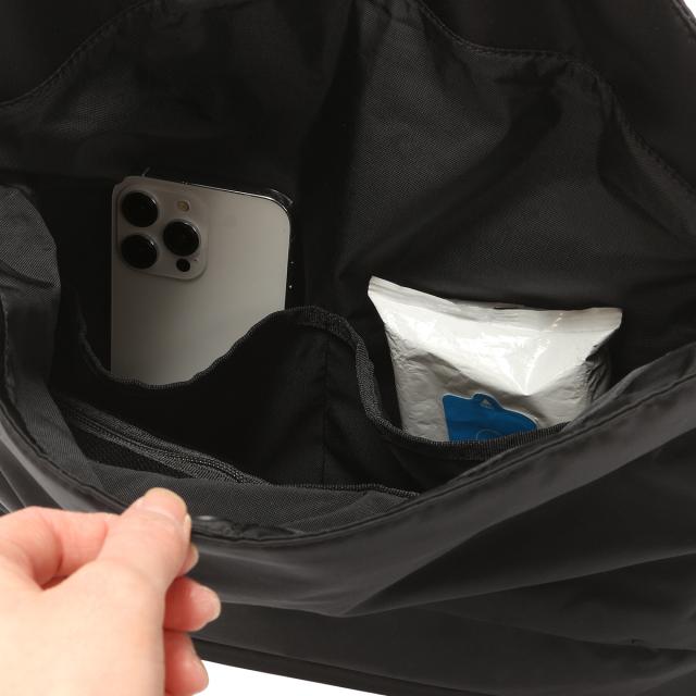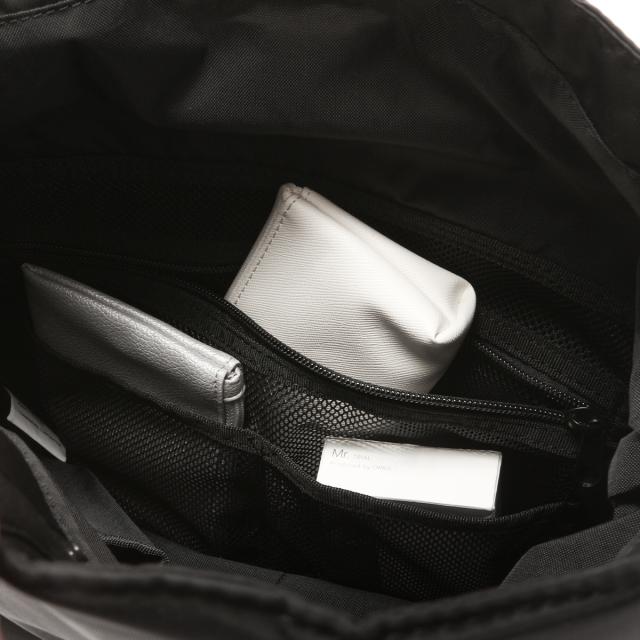 反対側には視認性の高いメッシュ素材のファスナーポケットが1つ、オープンポケットが2つあります。