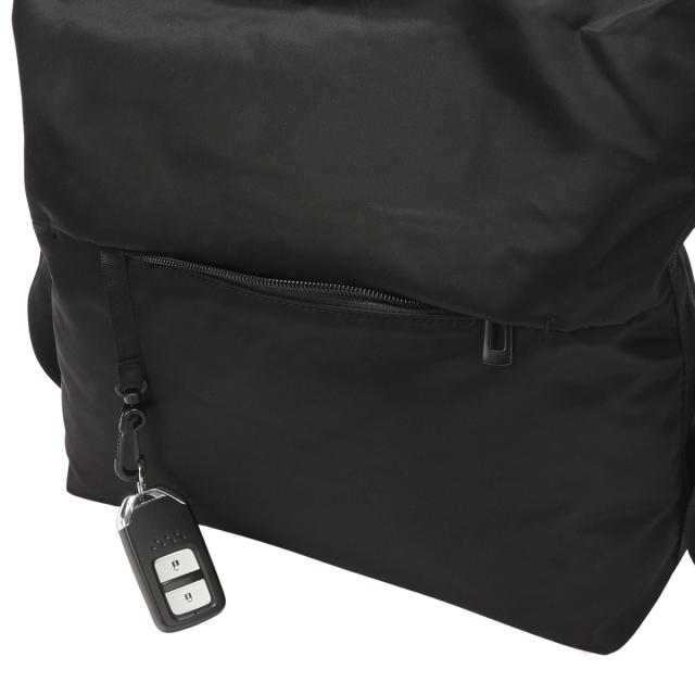 フロント面にはキーフック付きのファスナーポケットを配置。
