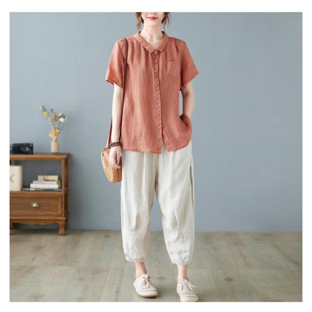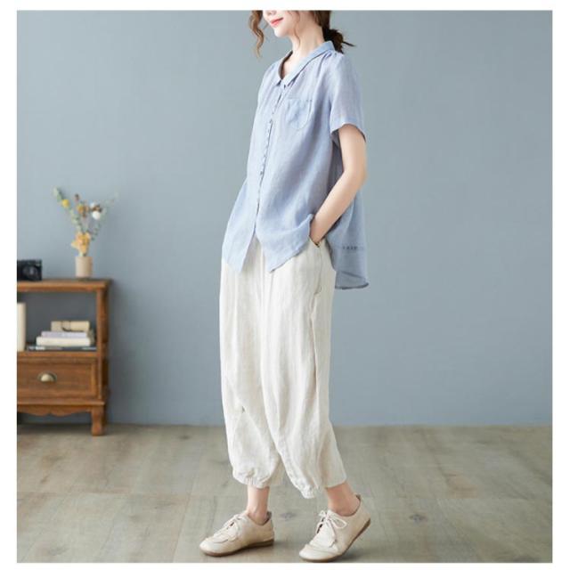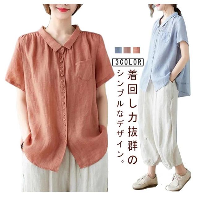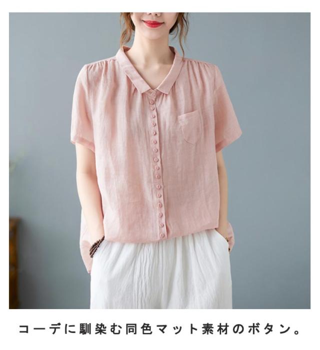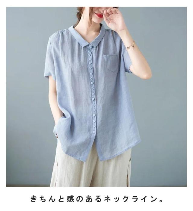 春 無地 カジュアル 半袖 シャツブラウス 夏 シャツ レディース 羽織り 胸ポケット タンドカラー ブラウス 前開き 涼しい シャツブラウス トップス 小顔効果 ダブルガーゼ 体型カバー 無地 通勤 半袖 20代 30代 50代