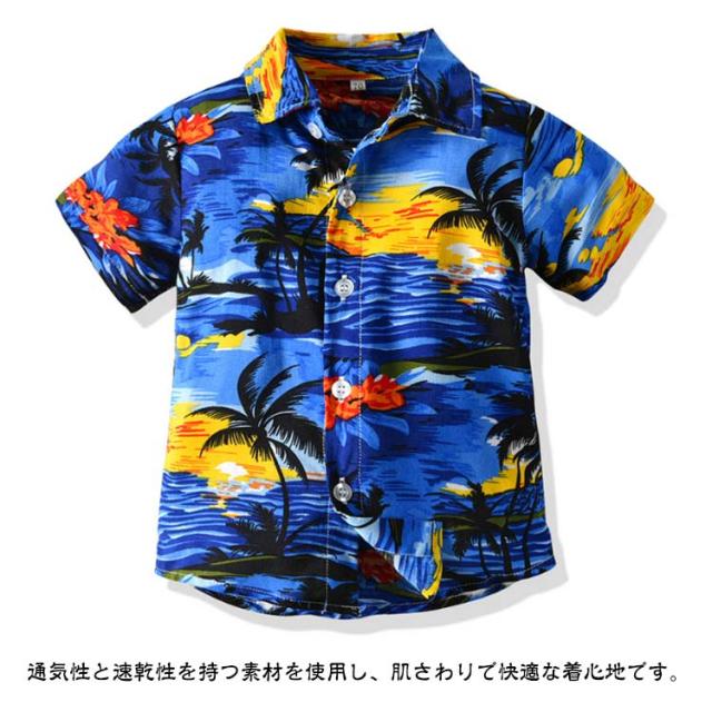 キッズ 子供服 男の子 幼児服 半袖シャツ アロハシャツ ジュニア 総柄 夏 綿 ベビー服 ビーチウェア ハワイ風 子供服 リゾート 子ども 70 カジュアル シャツ 旅行 海辺 可愛い おしゃれ 葉柄 110 80 90 100 花柄シャツ 120 130 140 150