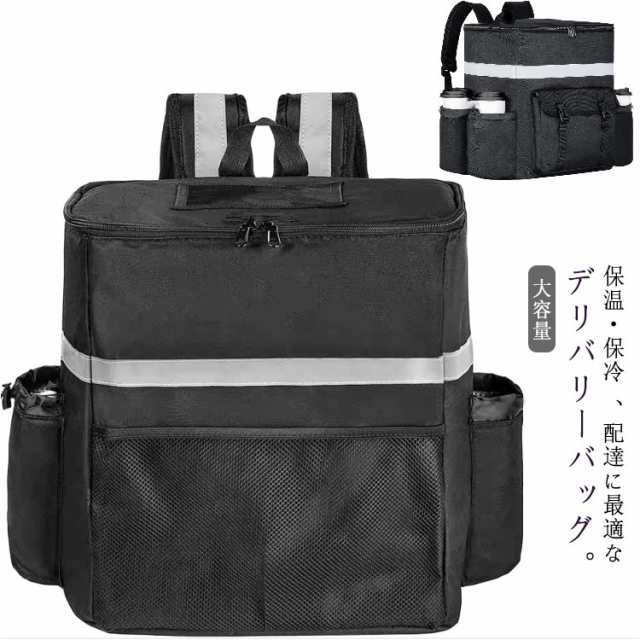 | 保温・保冷 、配達に最適なデリバリーバッグ。 保温保冷力抜群!デリバリーバッグは一番外側にポリエステル、中間には厚いパールコットン断熱材、そして内側の層には編み目のアルミ箔で作られています。 3層を厚くして製造していますので保温保冷効果がよく、飛沫や汚れを防ぎます。外側に防水素材を使った、雨天、みぞれ、大雪などに外出するときも、安心して食べ物を配送できます。 実用性が強い。両サイドと前面にポケットあり、小さい小物など収納できます。 上面がファスナーで開く仕様、食べ物の出し入れが便利です。 パックの前面と側面の反射ストリップにより、暗闇でライト等の光を反射し、事故防止などの安全対策に使用できます 。夜、雨天、霧の日などでも安心して食べ物を配送できます。 大容量バックパックには、寿司、刺身、飲み物、お弁当を収納するのに十分なスペースがあります。 男女問わずお使いいただけます。また折り畳み可能で収納やすくなる。 | |