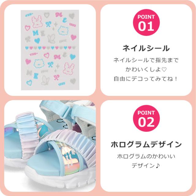 イコールミー サンダル キッズ 女の子 履きやすい 歩きやすい 疲れない 痛くない おしゃれ かわいい 脱げない マジックテープ 軽量 厚底 ストラップ かかと付き かかとあり ME-3759 スポーツサンダル 子供 小学生 ジュニア スポサン シューズ 靴