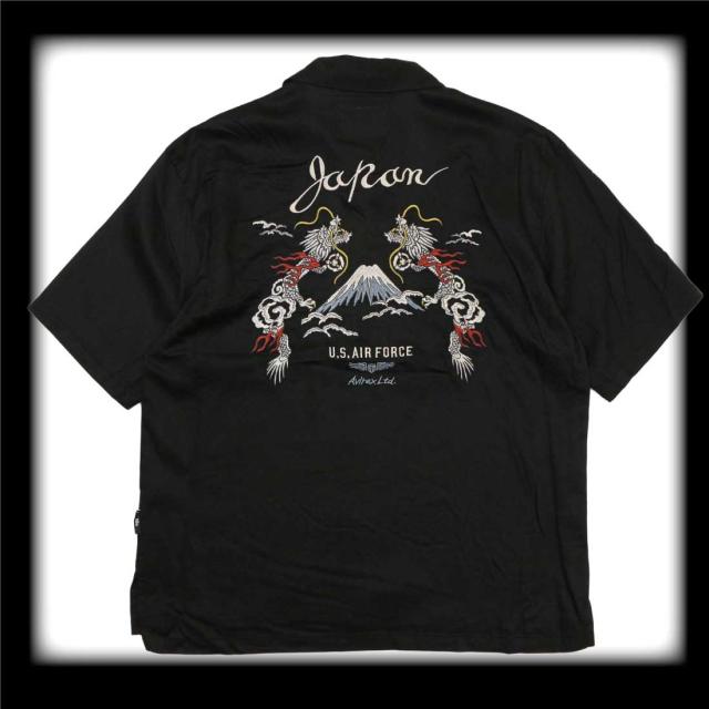 AVIREX アヴィレックス アビレックス 半袖 シャツ 783-5123013 S/S DOUBLE DRAGON SOUVENIR SHIRT テンセル スーベニア 和柄 刺繍 メンズ ミリタリー ロゴ