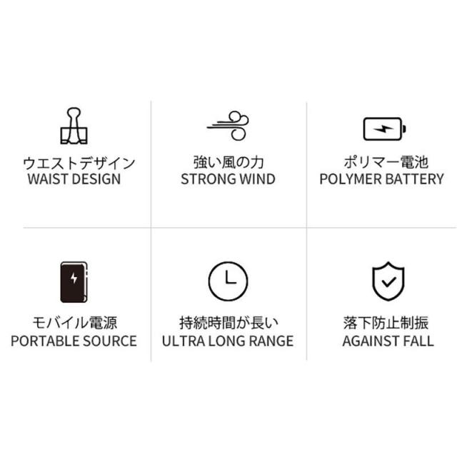 【多機能ウエストファン】多機能なポータブルUSB扇風機です。多機能携帯式腰掛け扇風機付き、専用ベルトが付属しています。このウエストファンは野外作業やアウトドアの必需品になります。
