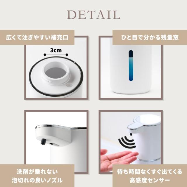 ソープディスペンサー 自動 泡 液体 壁掛け 充電 食器洗剤 オートディスペンサー ハンドソープディスペンサー スリム 防水 浮かせる 充電式 おしゃれ かわいい