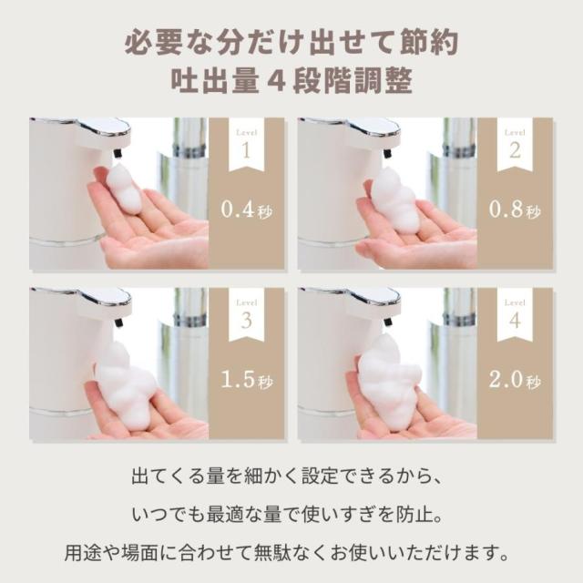 ・出てくる量を4段階で細かく設定できるから使いすぎを防止。用途や場面に合わせて無駄なくお使いいただけます。