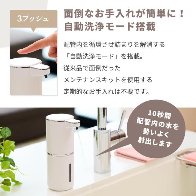 ・配管内の詰まりを解消する「自動洗浄モード」を搭載。従来品で面倒だったメンテナンスキットを使用する定期的なお手入れは不要です。