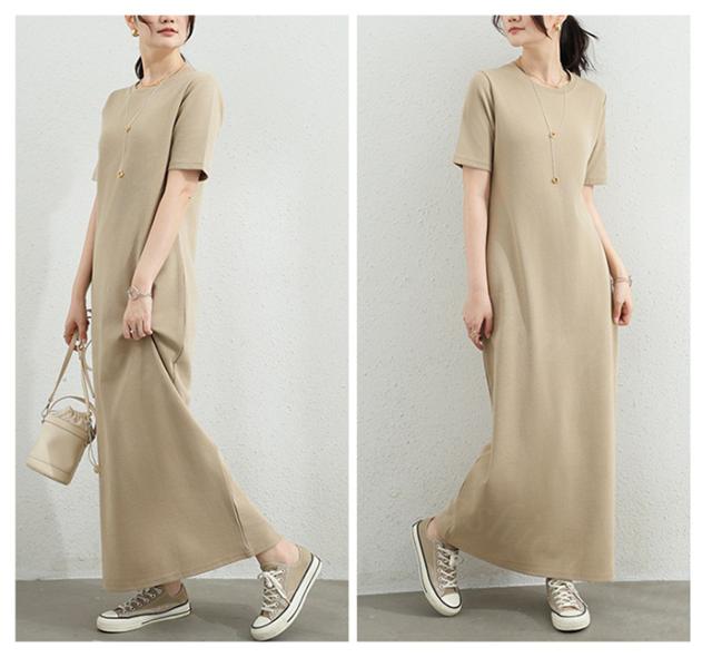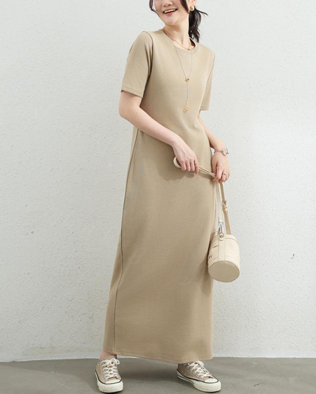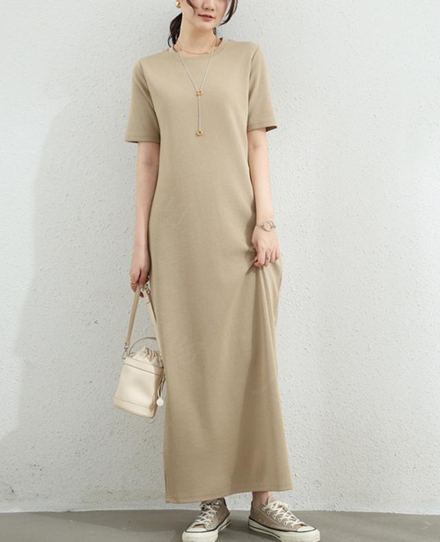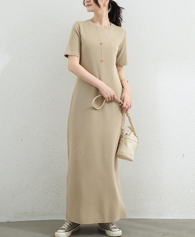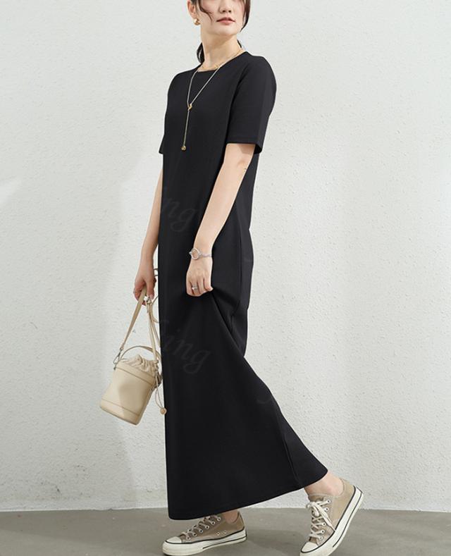 <1点2,450円!クーポン利用で> マキシワンピース レディース ロングワンピ 半袖 体型カバー 高見え 低身長 高身長 春 夏 大人カジュアル シンプル 楽ちん 着回し おしゃれ