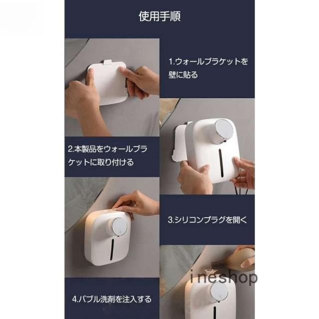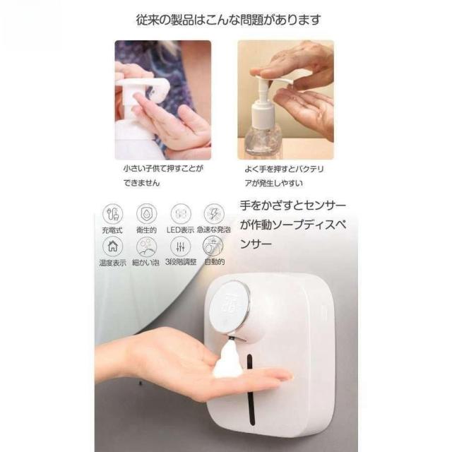 ソープディスペンサー自動泡充電式壁掛け非接触吐出量調整ハンドソープディスペンサー320ml1500mAhノータッチふわふわ泡泡立てポンプボトル赤外線