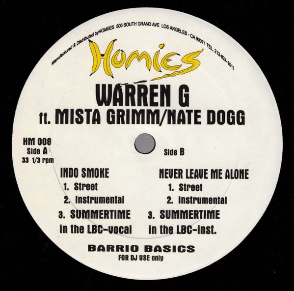 【中古】米12” Warren G, Mista Grimm / Nate D Indo Smoke / Never Leave Me Alone HM008 Homies /00250