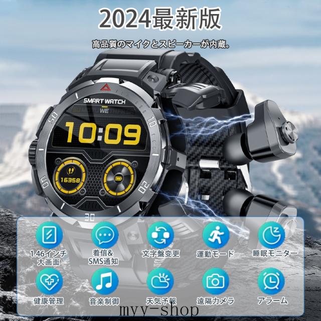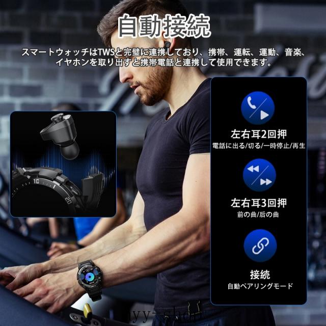 高級スマートウォッチ TWSイヤホン スマートウォッチ 1.46インチ画面腕時計 歩数計 両耳イヤホン Bluetooth5.2 通話機能付き 耐寒耐熱 活動量計 天気予報 DIY文字盤 消費カロリー アラーム ミニゲーム 電卓 着信電話 Line通知 iphone&アンドロイド対応 お贈り物 日本語説明書