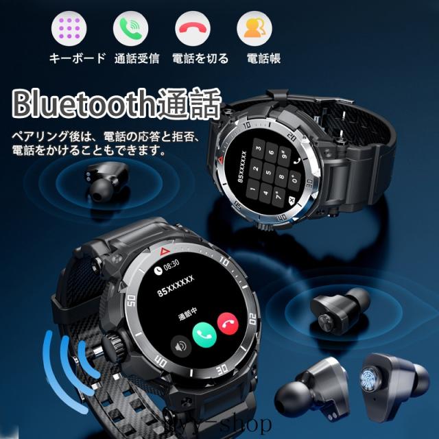 スマートウォッチ 血圧測定 通話機能付き TWSイヤホン付き 日本製センサー iphone Android対応 心拍数 血中酸素 睡眠監視 体温検知 着信通知 活動量計 多運動モード 文字盤自由設定 IP68防水 多国言語 腕時計 メンズ 父の日 プレゼント