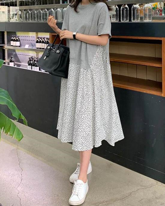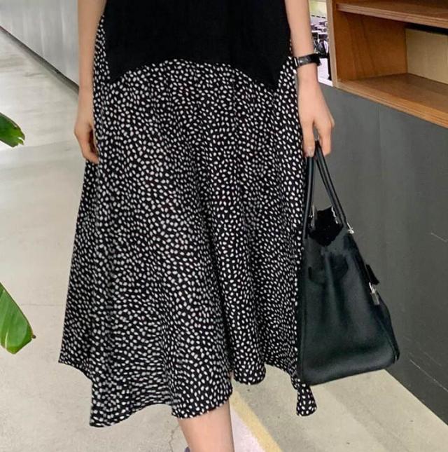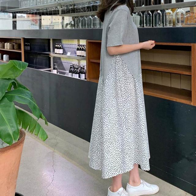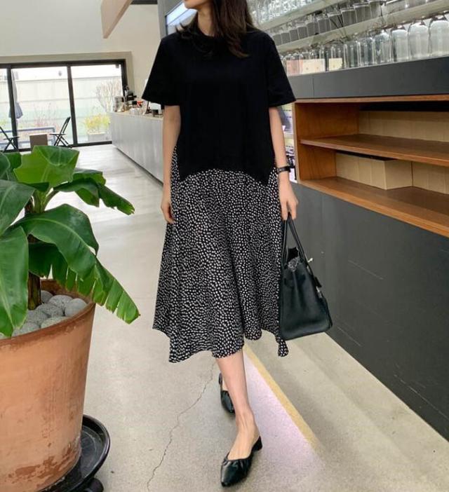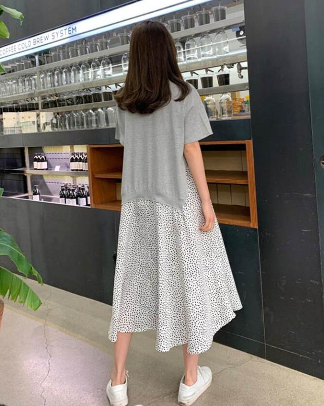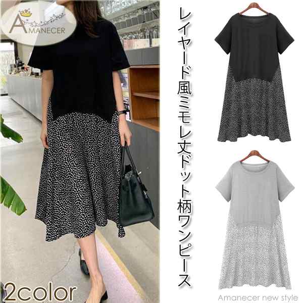 ワンピース 水玉ワンピース ミモレ丈ワンピース レイヤード風 ドット柄 ゆったり 大きいサイズ