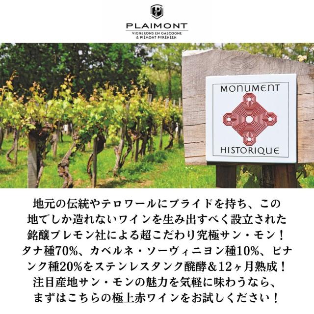 1979年、プレザンス、エニャン、サンモンの生産者により設立。社名のPLAIMONTはそれぞれの地名の一部(「Pl」aisance、「Ai」gnan、Saint 「Mont」)を組み合わせたものです。地元の伝統やテロワールにプライドを持ち、この地でしか造れないワインを生み出すべく、現在100人以上の生産者により運営されております。