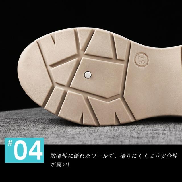 \point04 柔軟性が高いソール底/ソールは軽量で弾力性が高い、エチレン酢酸ビニール(EVA樹脂)を使用しており、軽量の上で柔軟性も強い!運動に適しています。更に、クッション性が強くて、安定感抜群で高齢者も楽々に歩きます。