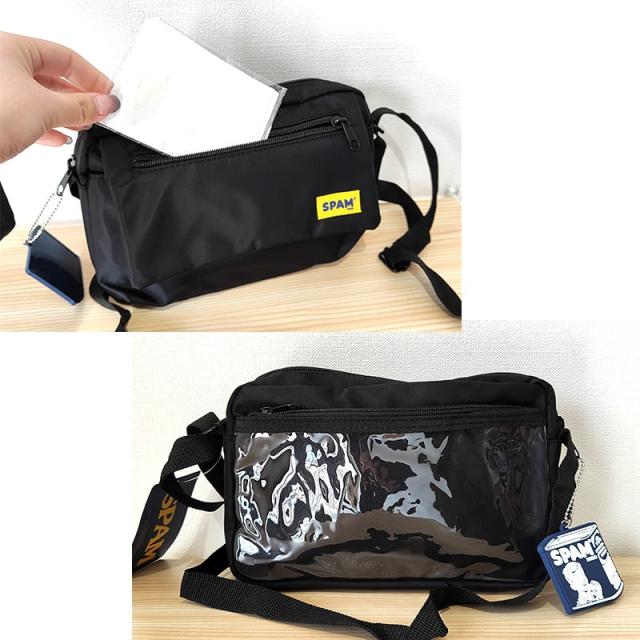 ショルダーバッグ おしゃれ SPAM かばん 肩掛け スパム かわいい 選べる ブラック ネイビー 鞄 ロゴ 軽量 マルチショルダー