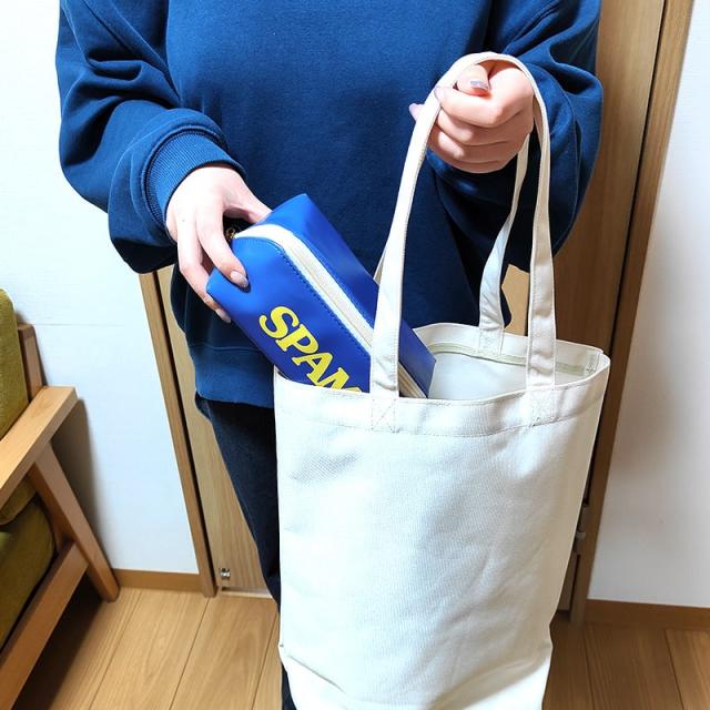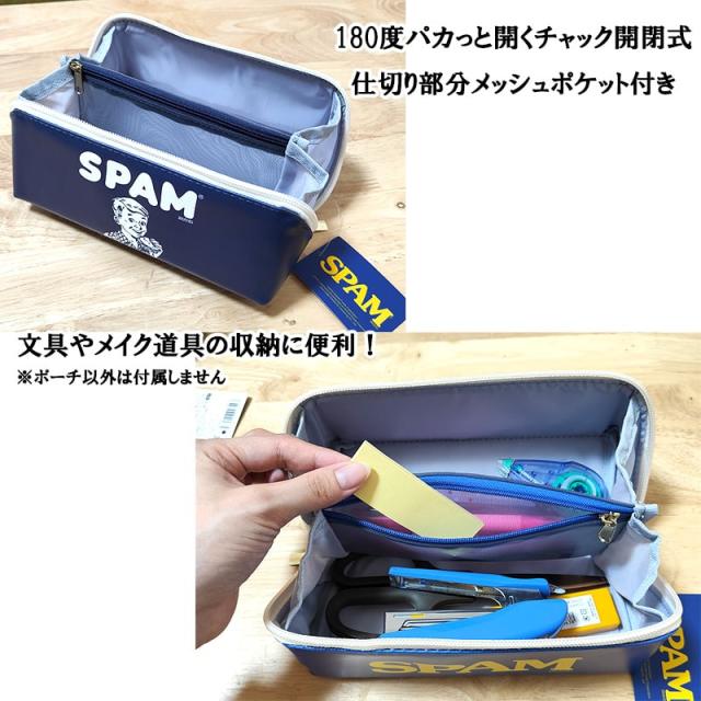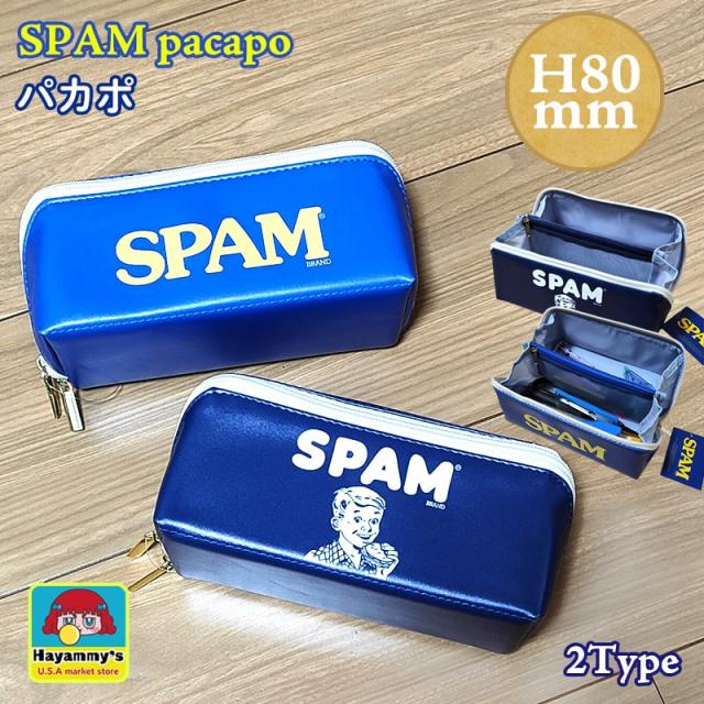 ポーチ SPAM 小物入れ パカポ おしゃれ スパム 選べる 2種類 ロゴ かわいい ネイビー ブルー アメリカン 雑貨 コスメ 収納
