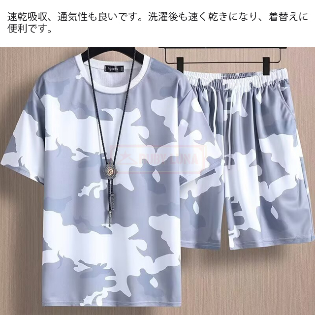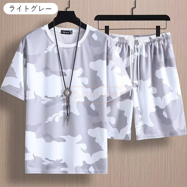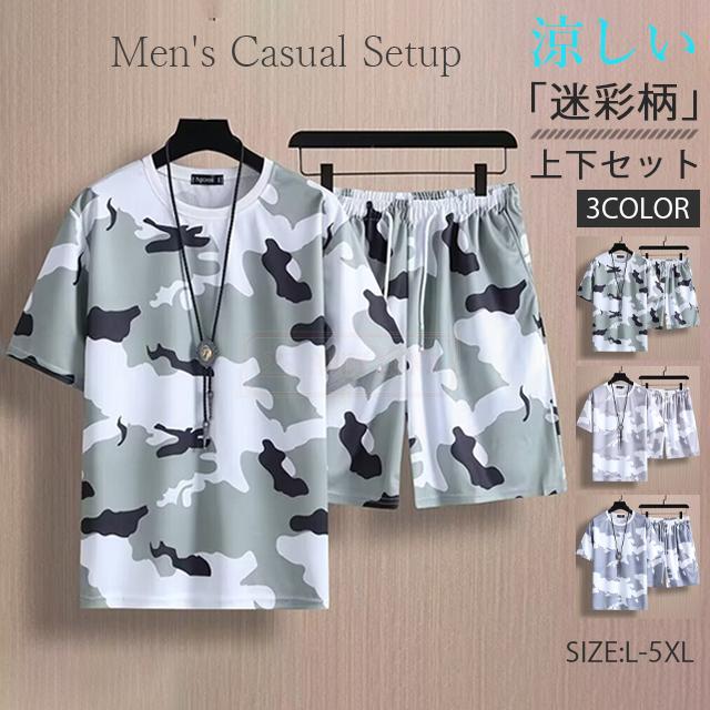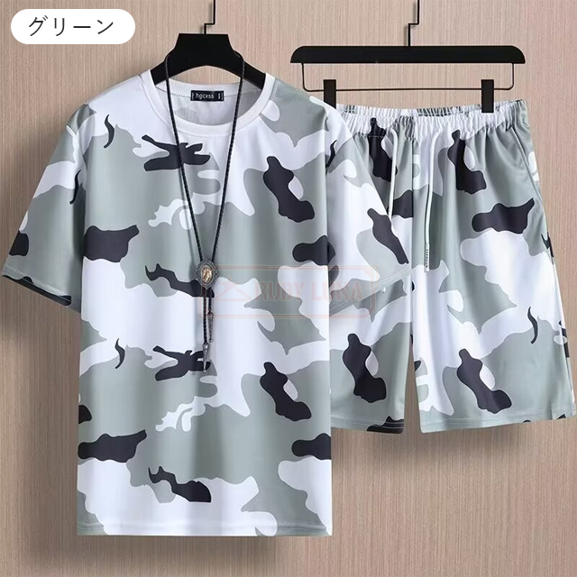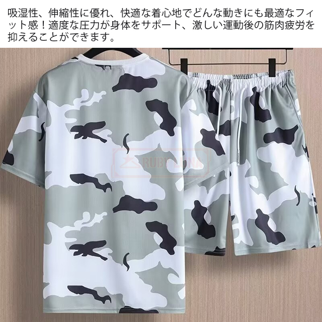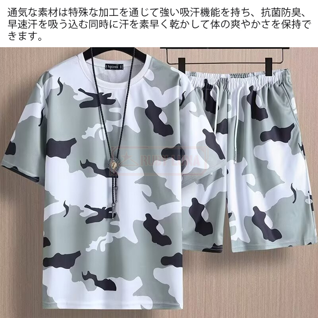 赤字覚悟 送料無料 セットアップ メンズ ジャージ 迷彩柄 半袖 Tシャツ ハーフパンツ 上下セット カモフラ柄 薄手 軽量 通気性 速乾 作業着 カジュアル tシャツセットアップ 運動着 ウォーキング ルームウェア 部屋着