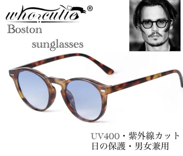 1 サングラス ボストン レンズ 伊達メガネ ボストンサングラス UV400 紫外線カット 目の保護 日焼け対策 男女兼用 メンズ レディース スモーク ブルー