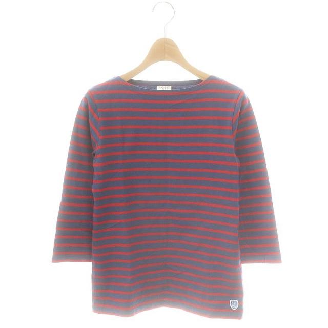 【中古】オーチバル ORCIVAL オーシバル ボーダー 七分袖 カットソー 2 ブルーグレー レッド /DF ■OS レディース