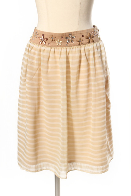 【中古】トッカ TOCCA ビジュー装飾 シフォン ボーダー スカート ahm0514 ■PN レディース