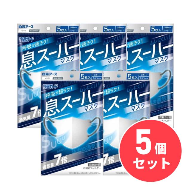 【まとめ買い】白元アース 快適ガード 息スーハーマスク 5枚入×5個セット ホワイト 立体マスク マスク 布マスク 衛生用品 クールマスク 熱中症対策 暑さ対策