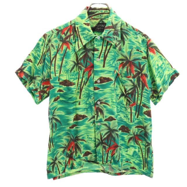SIR CLIFFORD 70s ヴィンテージ 衿芯 総柄 ヤシの木 半袖 シャツ グリーン メンズ