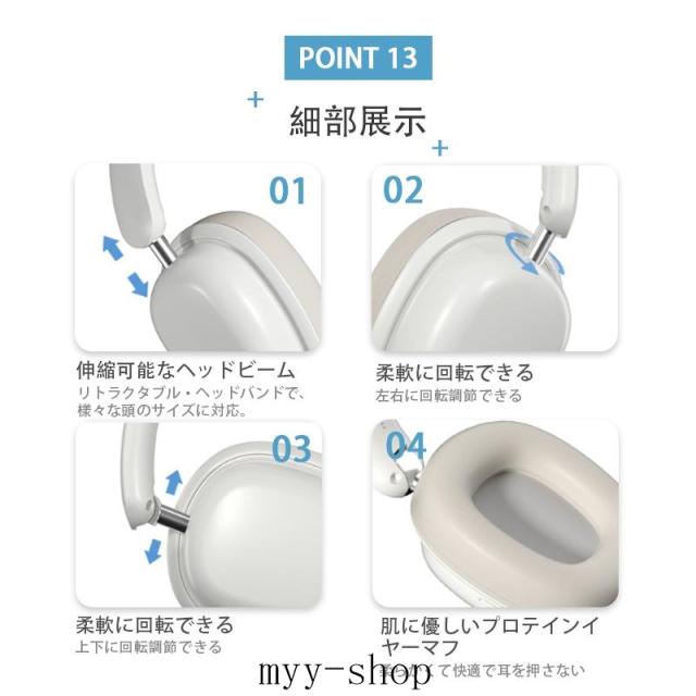 6.人間工学設計(イヤーバンド伸縮調節、90°回転できるフルカバーイヤーパッド)