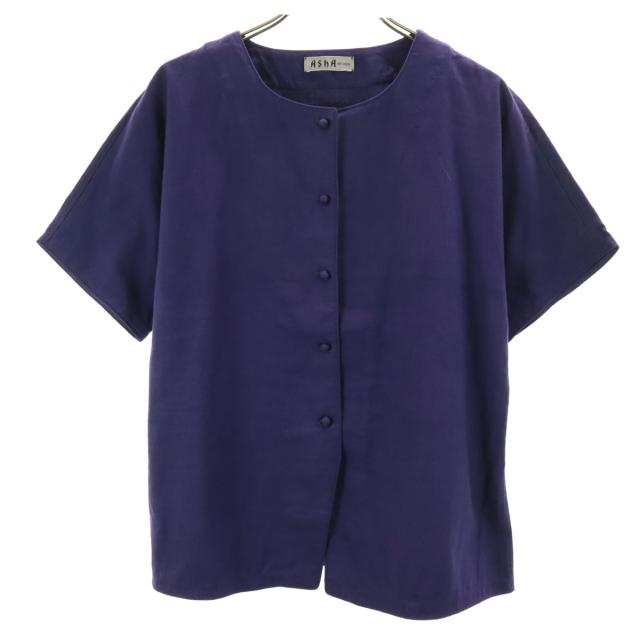 アシャ 90s 半袖 ノーカラー シャツ パープル ASHA BY MDS イッセイミヤケ レディース