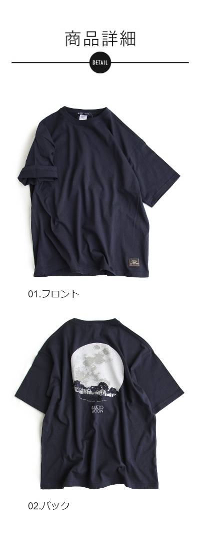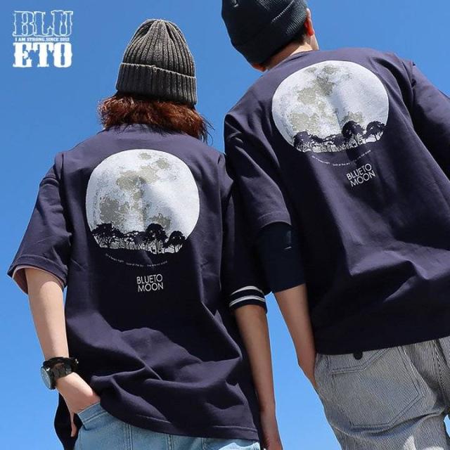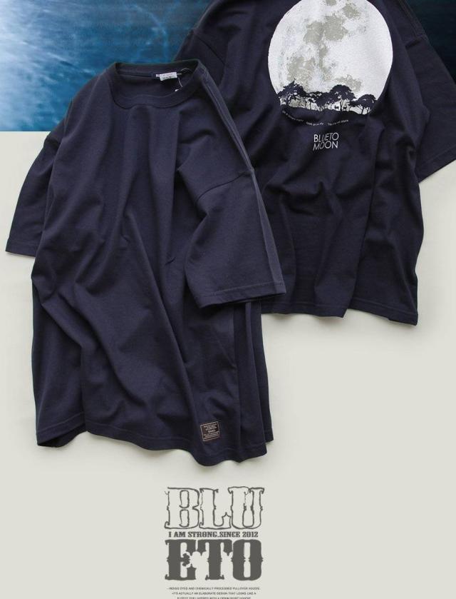 【メール便50】 tシャツ メンズ レディース 半袖 ゆったり カジュアル 大きいサイズ おしゃれ 満月 プリント ゆる ビッグシルエット ドロップショルダー しっかり生地 コットン100% 5.6オンス 大人 BLUETO ブルート