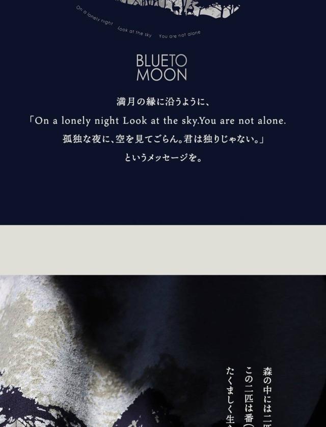 ・満月の縁に沿うように、「On a lonely night Look at the sky.You are not alone. 孤独な夜に、空を見てごらん。君は独りじゃない。」というメッセージを。