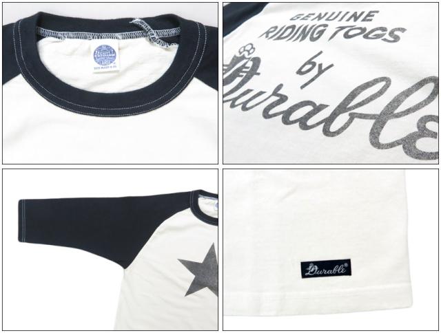 6分丈のラグランTシャツをベースに"DURABLE"のロゴとワンスターをレイアウト。