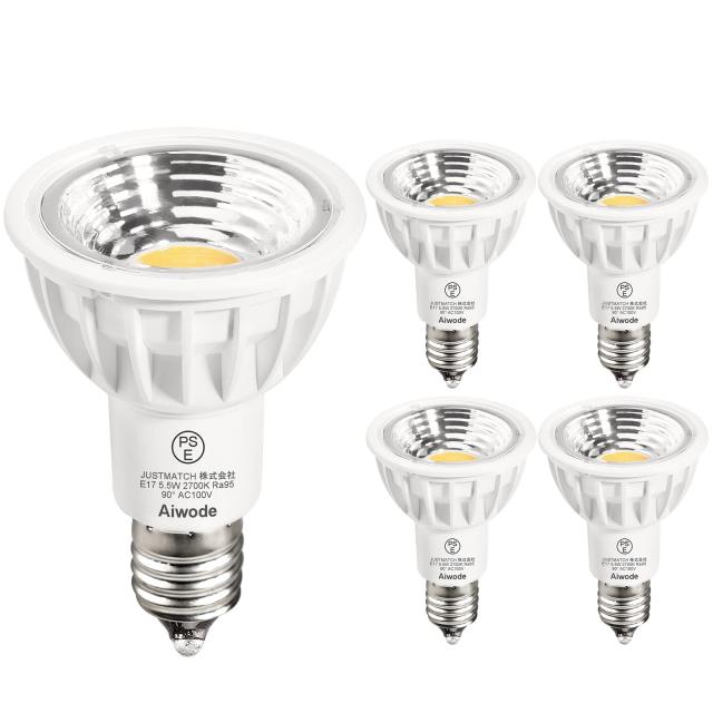 Aiwode 5.5W LED電球 E17口金 電球色2700K、50-60W形相当LEDハロゲン電球、LEDスポットライトCRI95 明るさ550lm調光不可広角90°交流100V