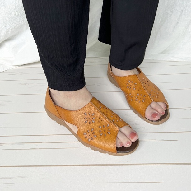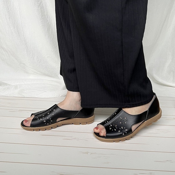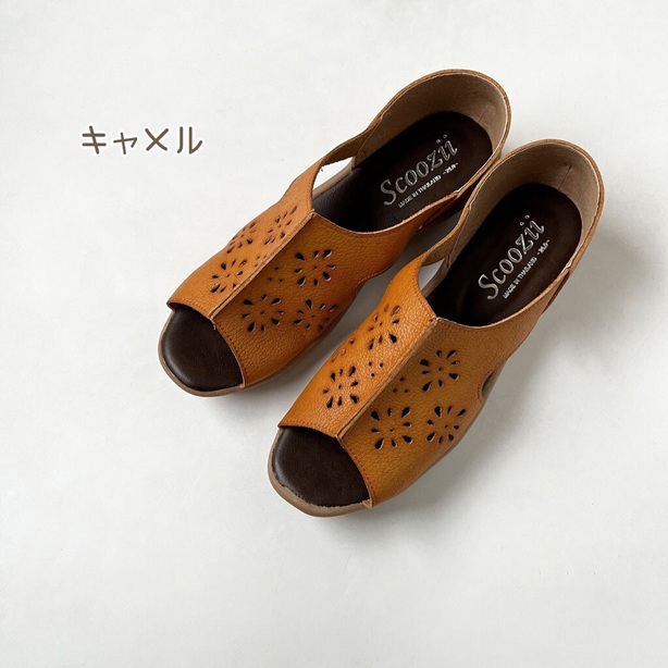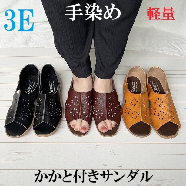 手染め レディースサンダル 幅広 3e 外反母趾 かかと付き パンチング 花柄 ナチュラル サンダル フラット オープントゥ フラットシューズ コンフォートサンダル 大きいサイズ レザー風 軽量