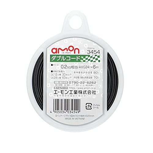 エーモン(amon) ダブルコード 0.2sq相当(AWG24) 6m 黒/白ライン 3454