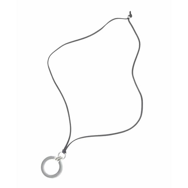 お洒落なレザー調紐に加えたメタルパーツをスライドして長さの調整アレンジも自在です。